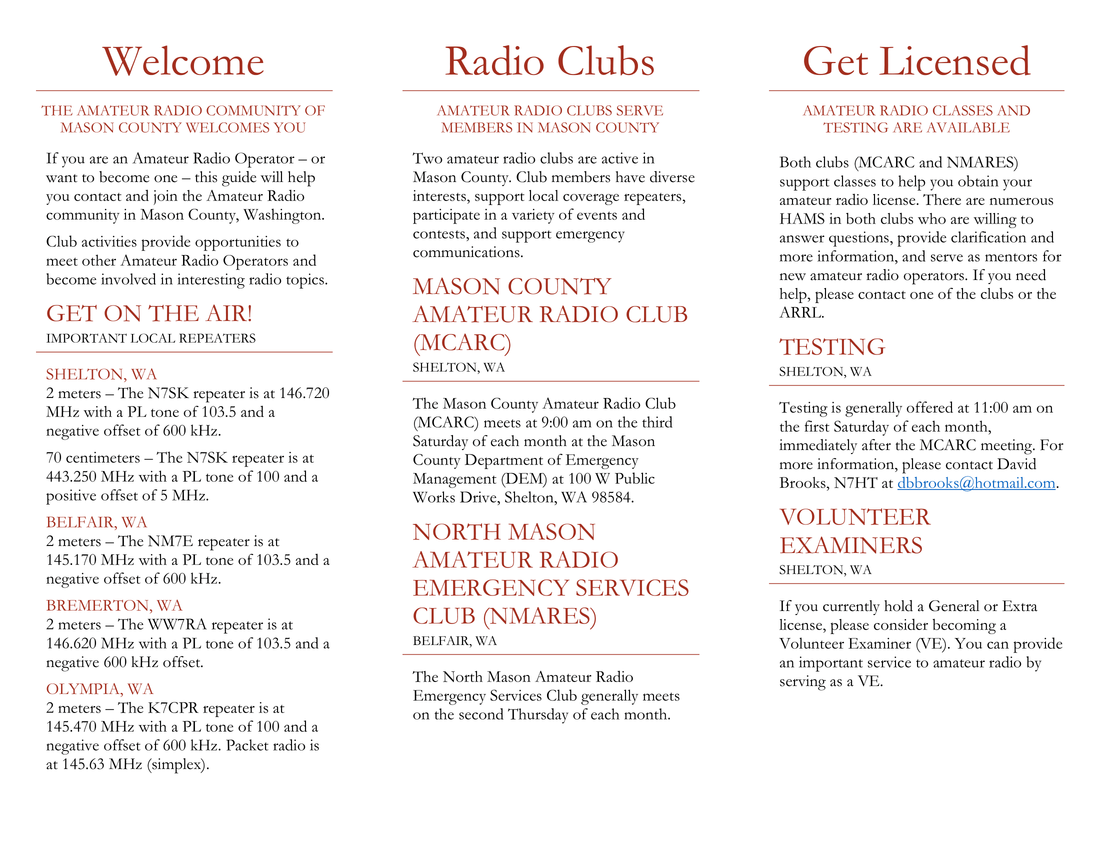 View our brochure on amateur radio in Mason County: