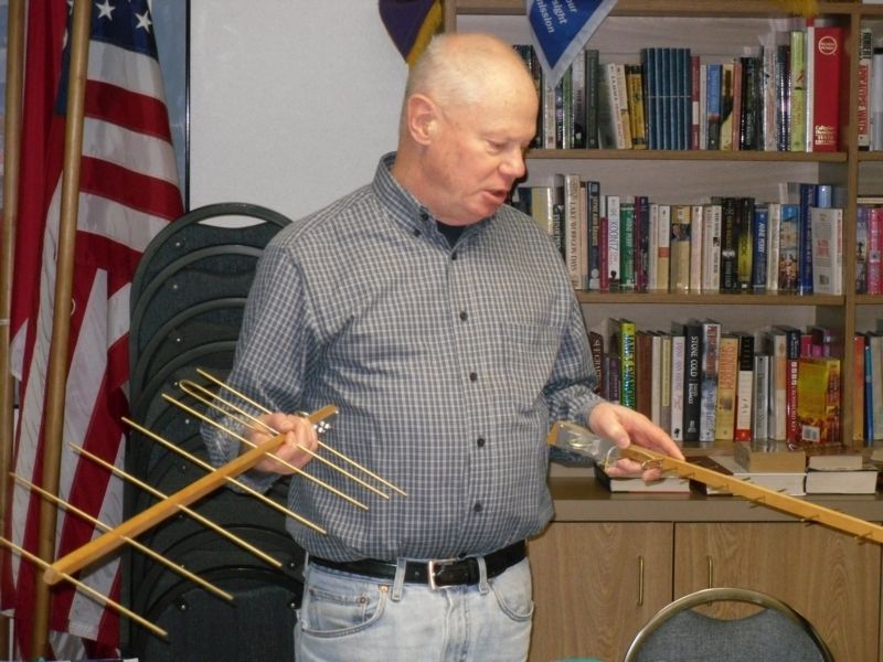 Several very interesting ham radio projects were brought to the January 2010 club meeting by members. Need to get a wire over a tree? Marsh built a launcher to do exactly that. How about a homemade beam antenna, or an efficient ground-plane antenna? David brought some interesting testing equipment he had built, and Merle showed us an amazing project in which he converts signals to be able to work at microwave frequencies!
