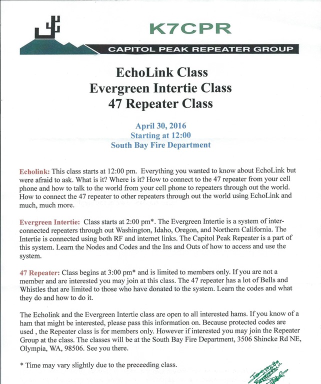 Echo Link Class, Evergreen Intertie Class, Capital Peak Repeater Class