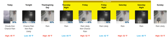 * ADDITIONAL DETAILS… – Heavy rain will begin on Thursday with flooding possible Thursday night. The Skokomish River will recede on Friday then rise again on Saturday. – http://www.weather.gov/safety/flood