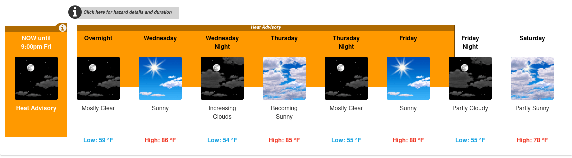 * WHAT…Hot conditions with temperatures in the mid 80s to around 90 degrees expected. This will pose a moderate risk of heat- related illness.